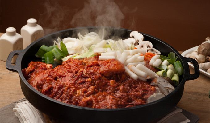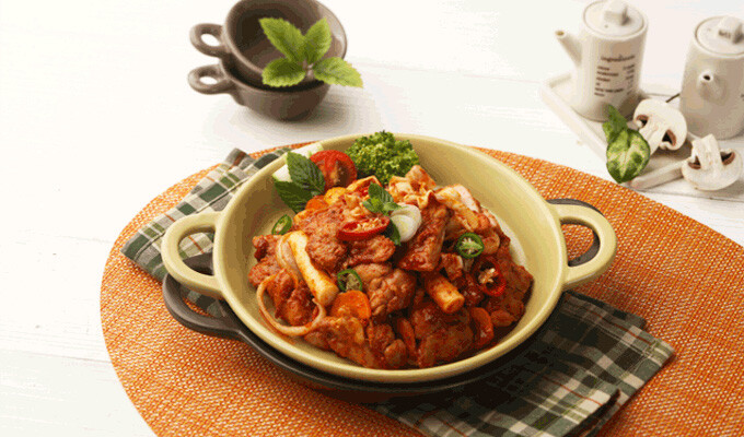 1) 팬을 약불에서 살짝 달군후 껍질쪽부터 올린후 굵게썬 고구마도 올립니다. 2) 고기가 반쯤 익을 무렵, 야채를 넣고 중불 > 강불로 올려줍니다. 3) 고기를 먹기 좋은 크기로 자르고 취향에따라 증정양념을 추가하면 춘천닭갈비의 맛을 보실 수 있습니다. (자주 뒤집어주시고, 기름 절대 넣지 마세요)